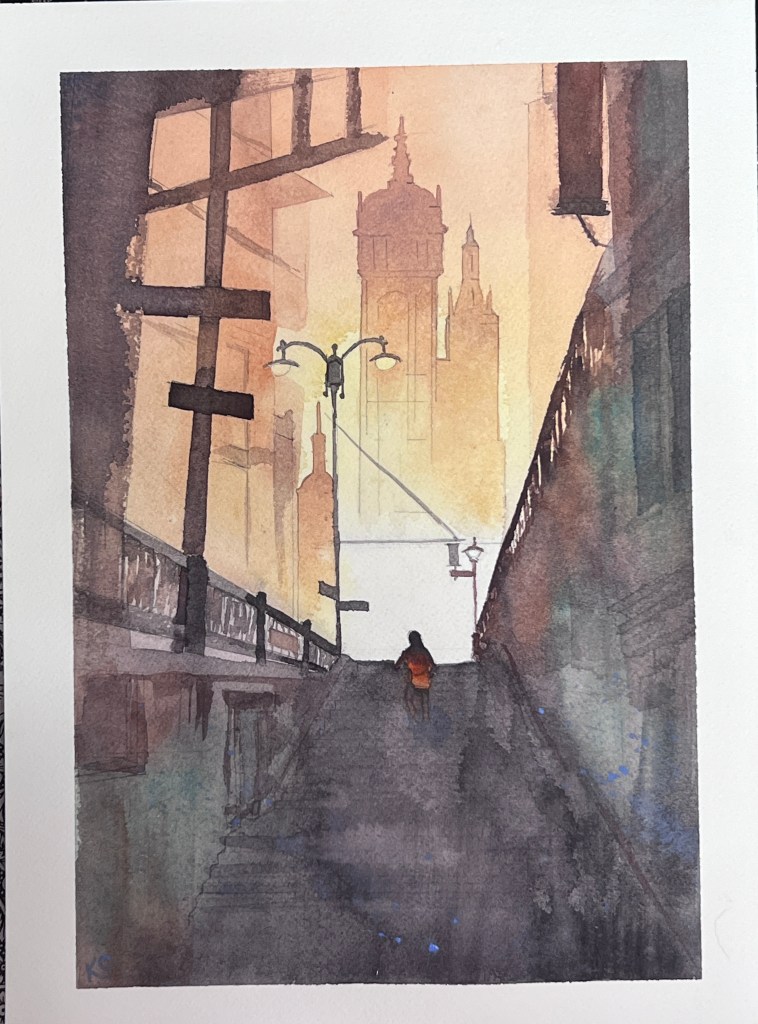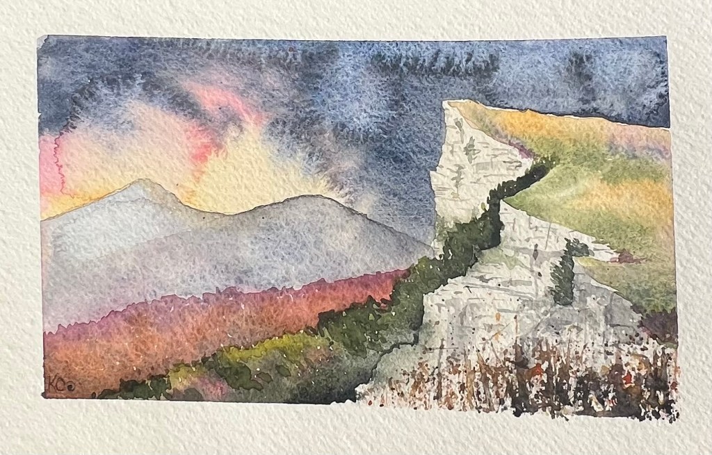 My watercolours are grounded in the raw, elemental beauty of the Lake District, where mountains and lakes serve not merely as subjects but as deeply personal sites of memory and emotional resonance. My paintings do not present landscapes as static views; instead, they emerge as living presences—mutable, charged, and deeply felt. My approach foregrounds the atmospheric and expressive possibilities of watercolour, harnessing the medium’s unpredictability to mirror the shifting weather, play of light, and underlying pulse of the terrain itself.