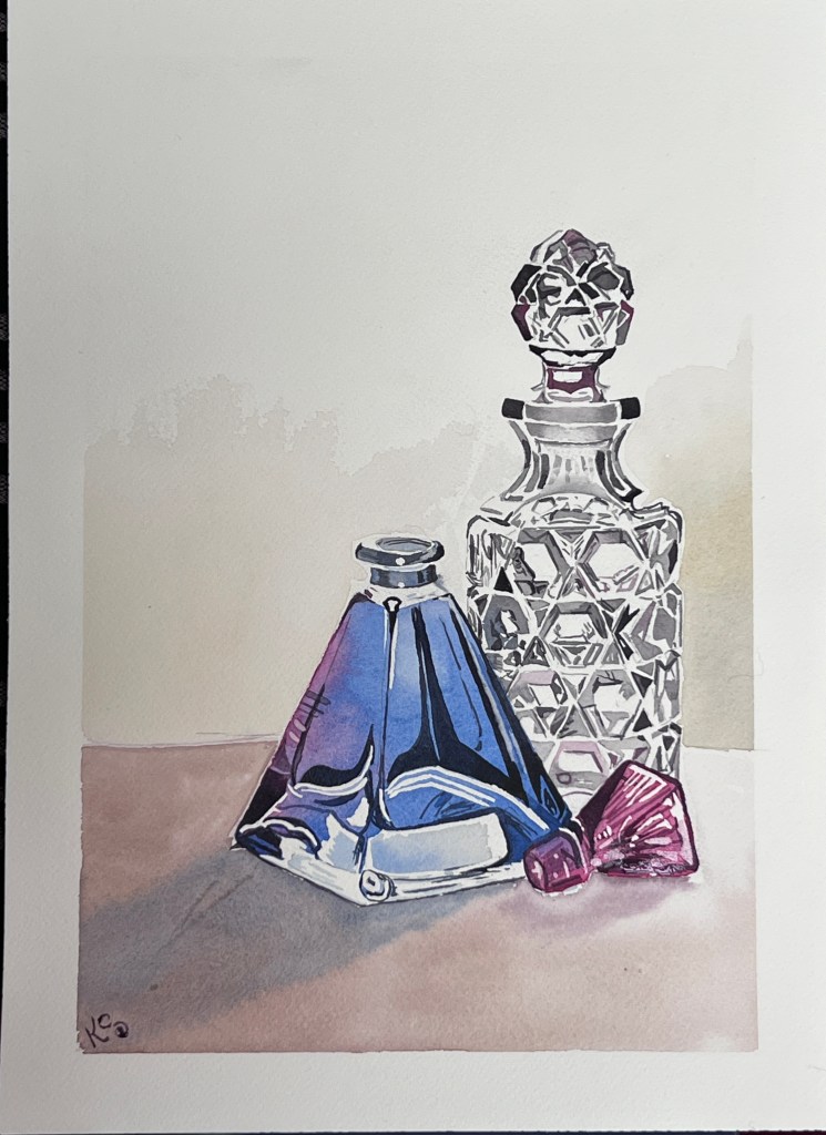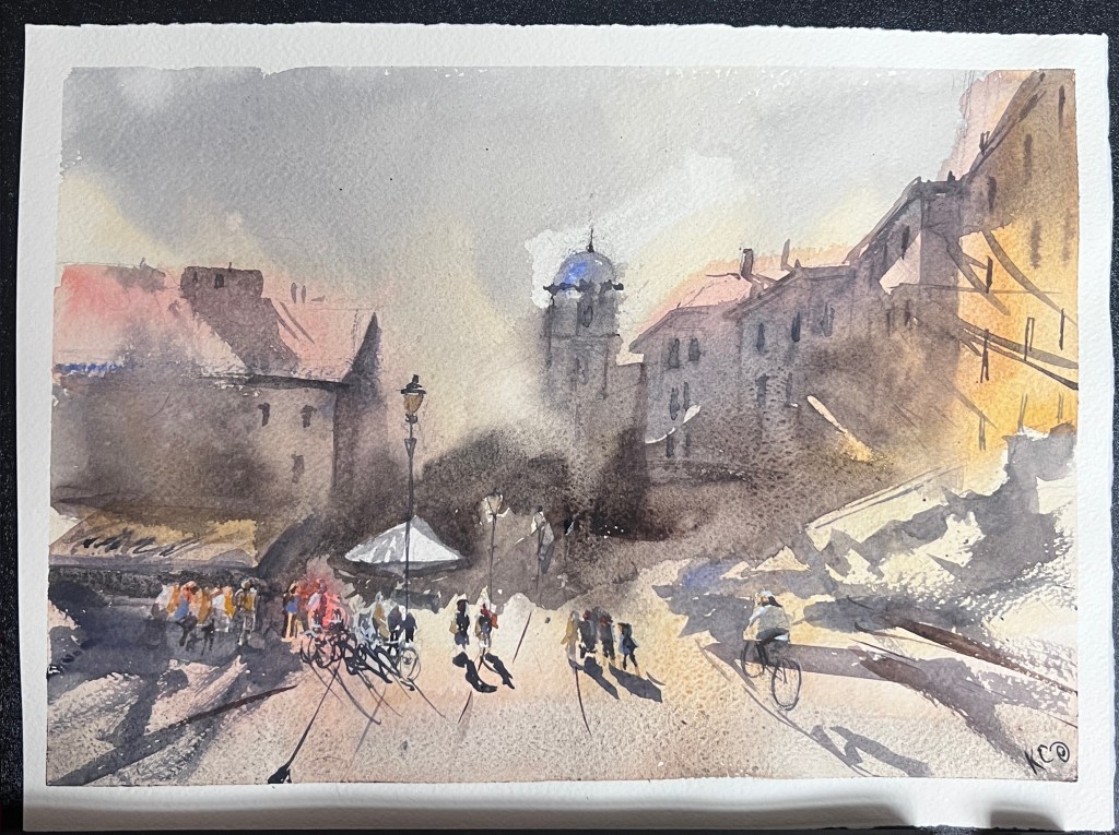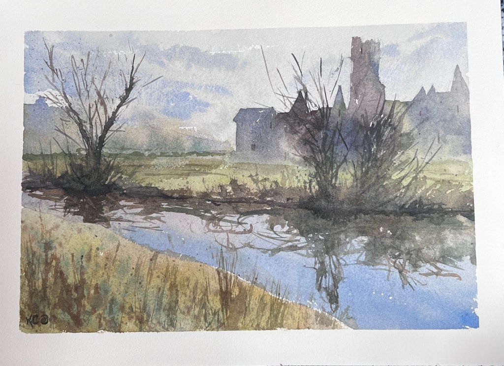 I works primarily with 100% cotton cold-pressed paper, which I chose for its ability to absorb and hold the complexity of layered washes and wet-into-wet applications. My process often begins en plein air, where direct engagement with the elements informs a gestural, intuitive foundation. Back in the studio, these impressions are refined—though never overworked—to preserve their immediacy. Blooms and veils of colour are built up in translucent layers, creating depth and atmosphere without losing the freshness of the initial mark.